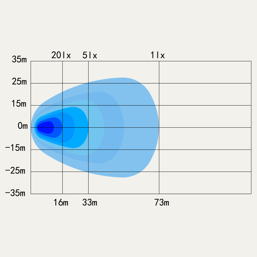 • Leveä valokuvio 1 luksin kantamalla 75 metrin päähän laajaan, tasaiseen valaistukseen